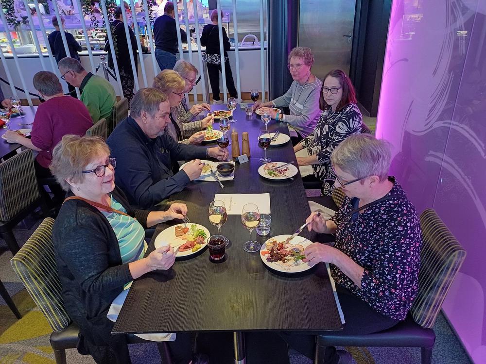 Ystävänpäiväristeily 11-12.2.2025, Turusta Tukholmaan. Yhdistyksestämme osallistui 8 henkilöä. Ohjelmassa mm. EKL:n tervehdyssanat, eläkkeensaajien uusi laulu, tanssiesityksiä, runolausuntaa ja kuorolaulantaa. Risteilyllä oli, tottakai Bingo, jonka juonsi tv:stä tuttu Janne Porkka. Tanssin pyörteisiin johdatti Sunset orkesteri. Ruoka oli hyvää ja sitä oli riittävästi. Pitkästä linja-automatkasta huolimatta matka oli piristävä ja seura miellyttävä.