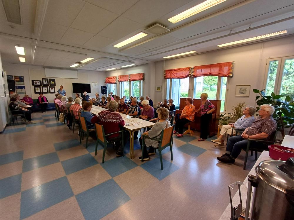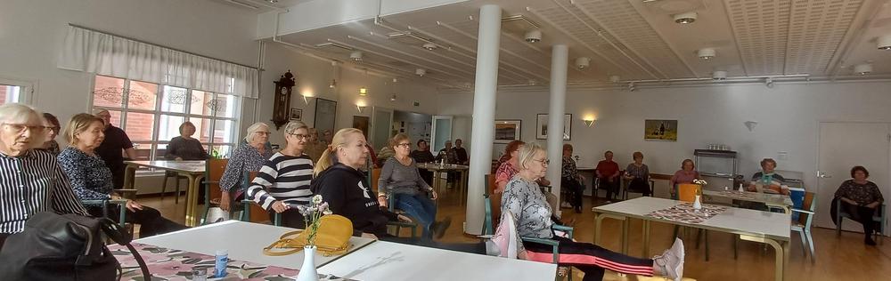 Hyvän Mielen kerho 25.9.-25; ajankohtaisten asioiden lisäksi Tarja ohjasi tuolijumppaa ja pelasimme bingoa, jossa oli palkintona myös makkaraa.