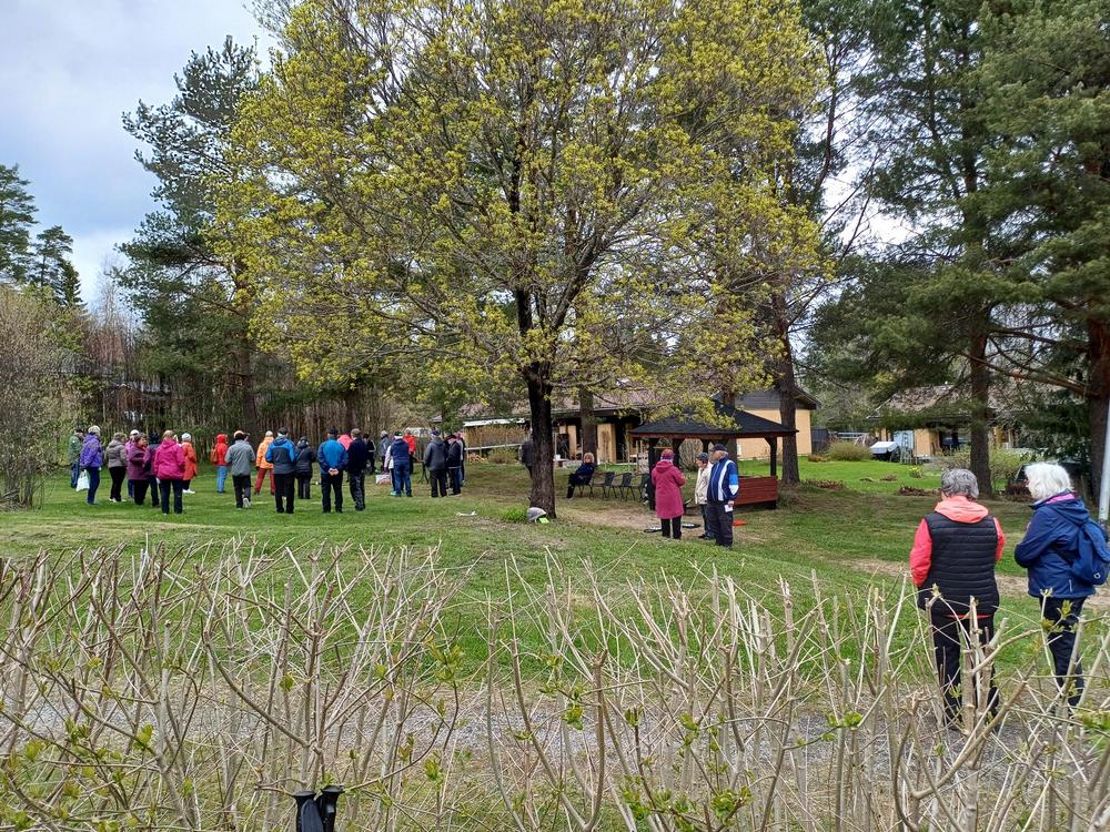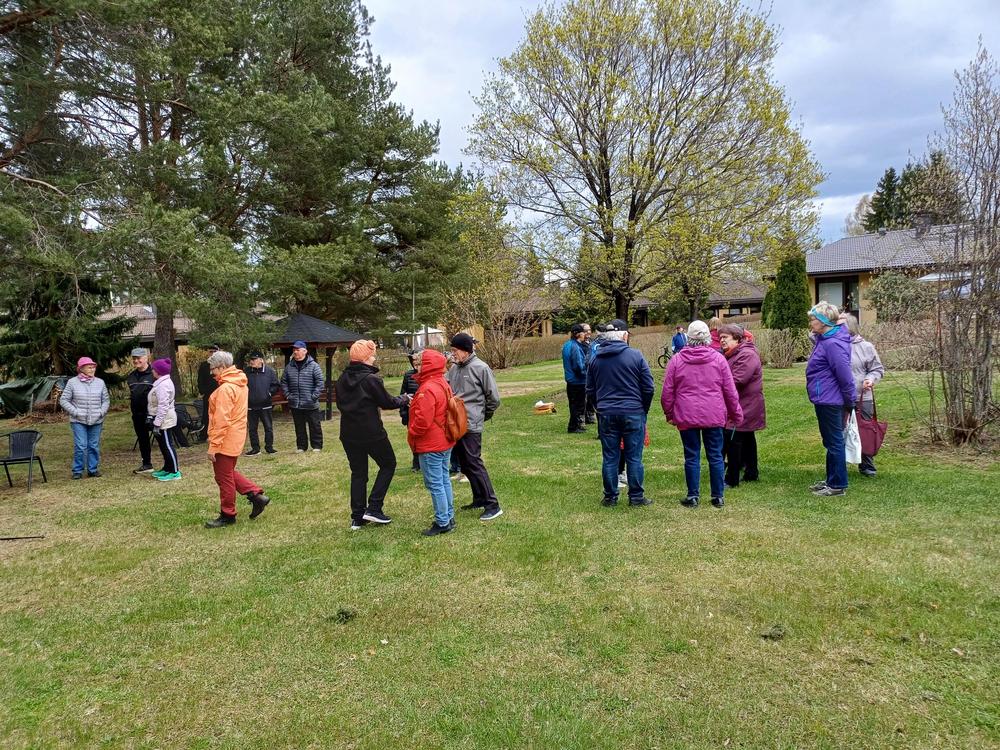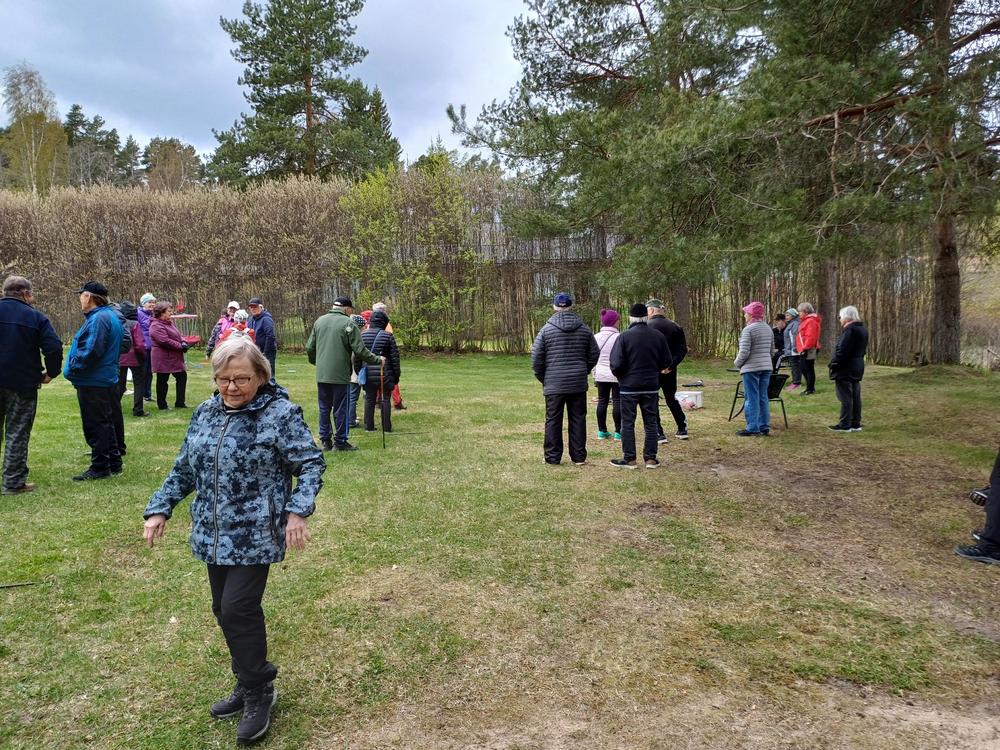 Ulkoilutapahtumassa nautittiin kahvin kanssa maittavia munkkeja ja kolmioleipiä. Olipa tarjolla myös virvokkeita grillimakkaran ohella. Ilma oli hieman viileä ja muutama pisara vettäkin oli ilmassa, mutta se ei menoa haitannut. Saappaanheitto- ja tunnistuskilpailu pitivät väen lämpimänä. Olipa mahdollisuus hieman heitellä frisbiitäkin. Kesäkausi alkaa ja aloitetaan syyskausi sen jälkeen taas uusin palkein.