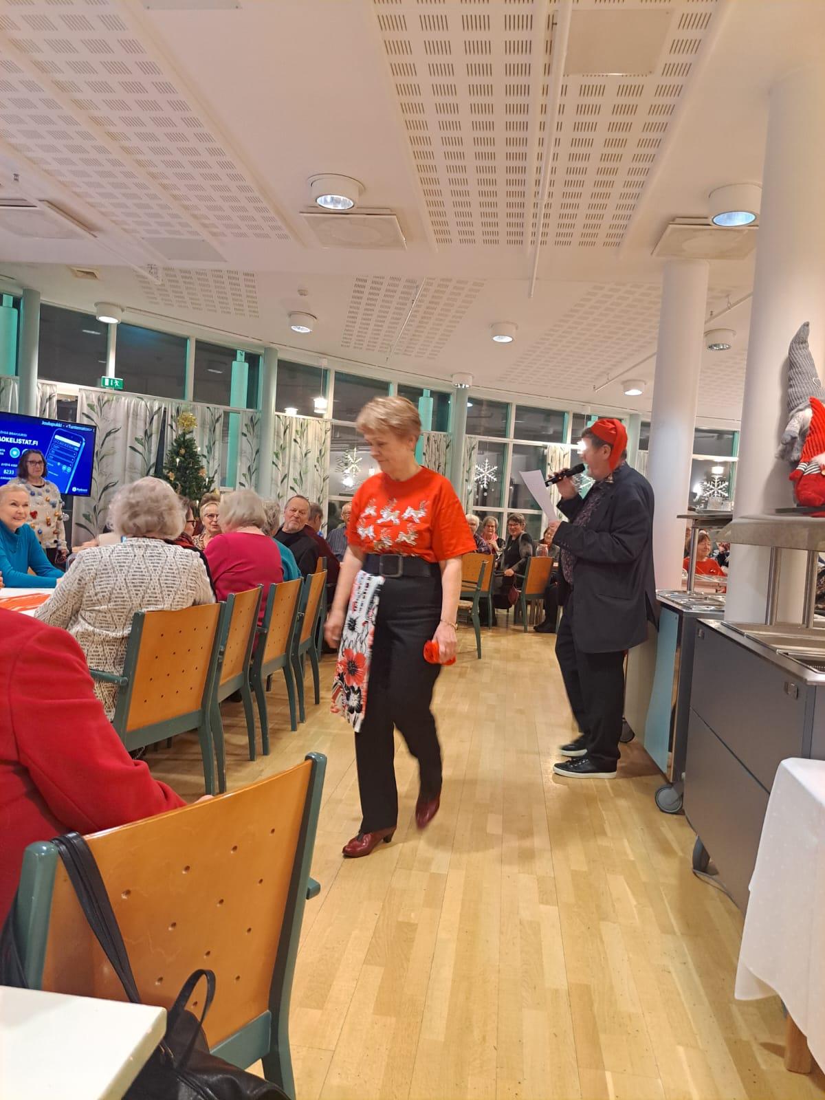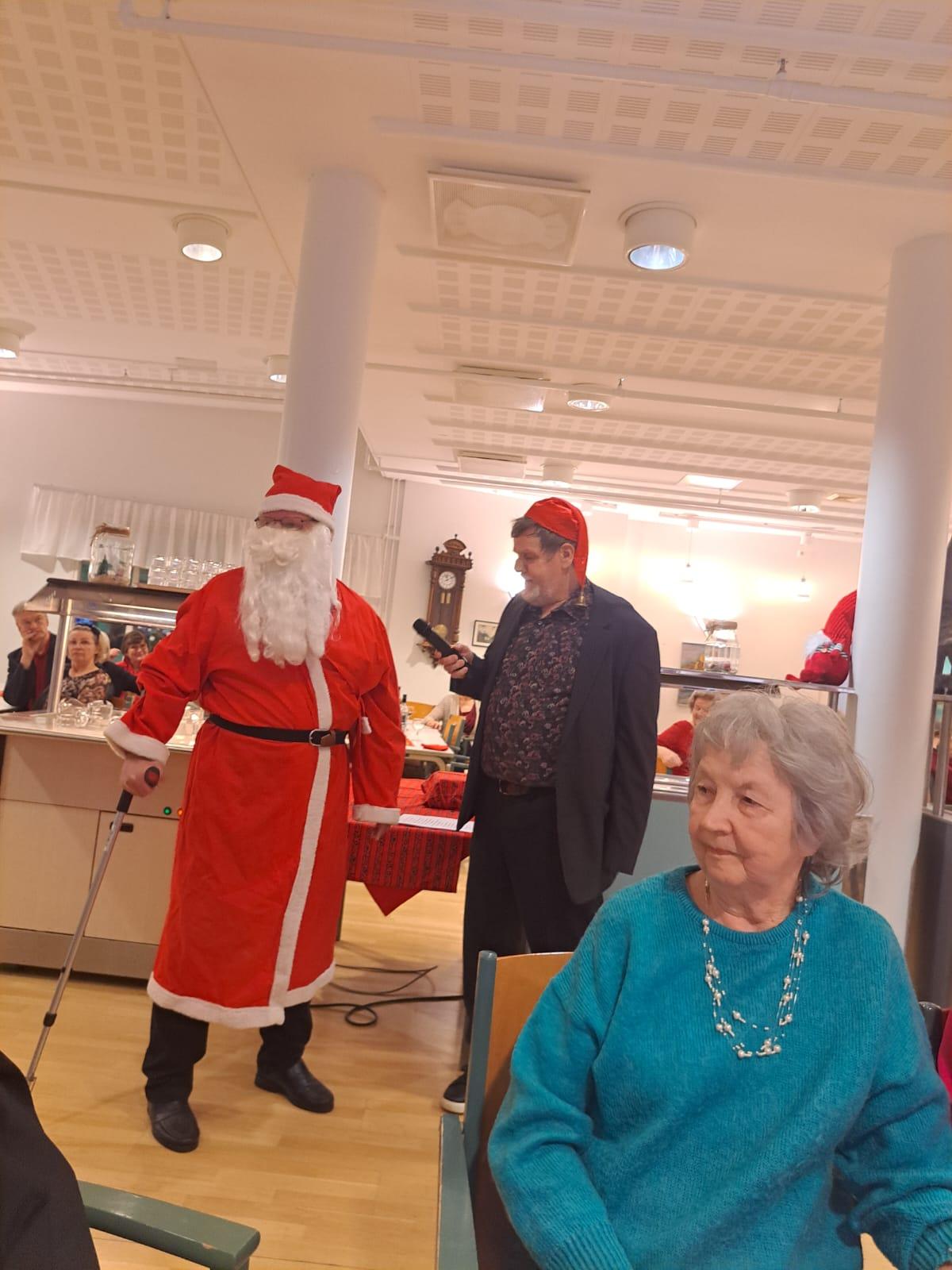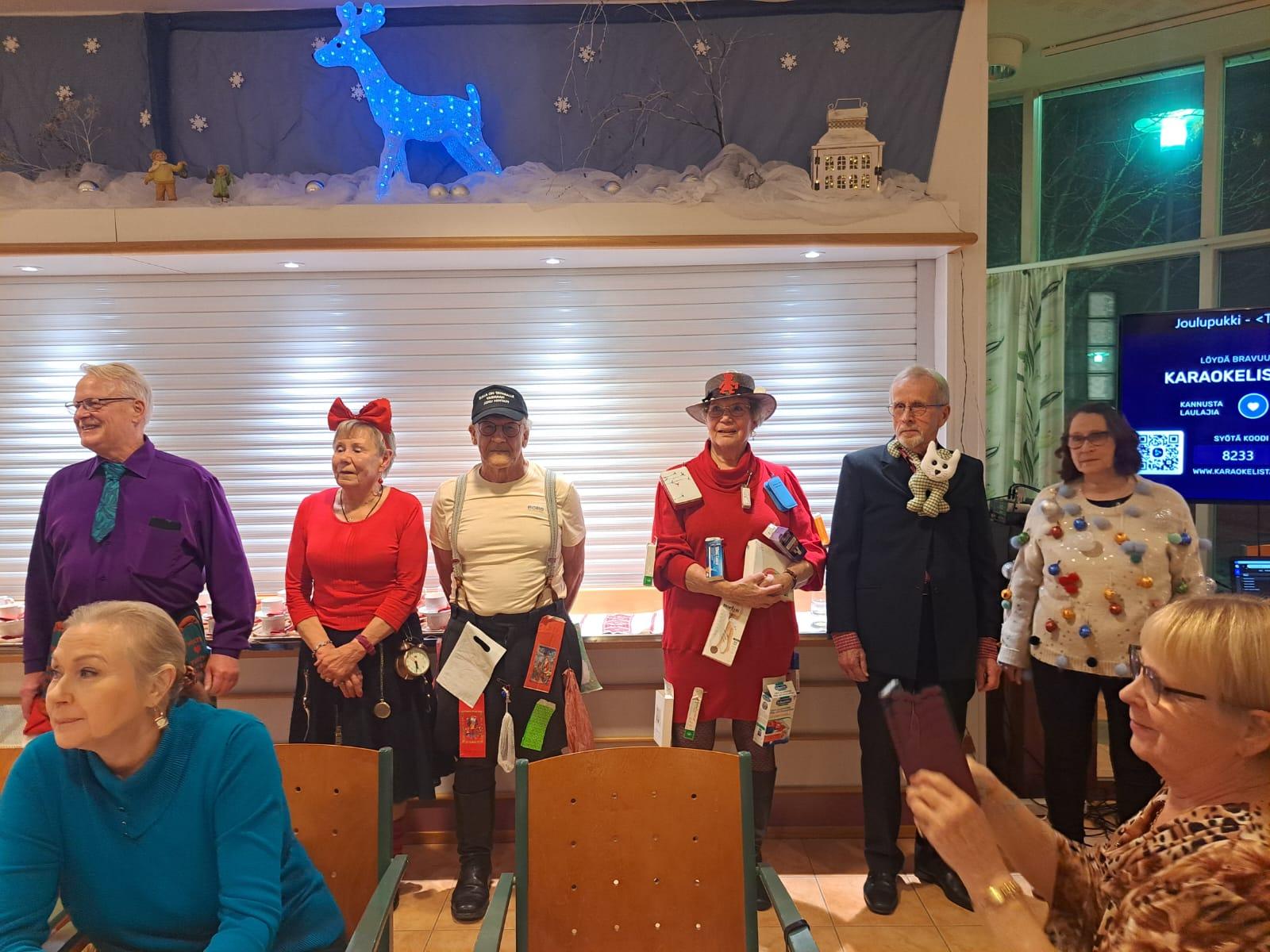 Juhlapaikka oli koristettu jouluaiheilla hyvinkin viihtyisäksi.