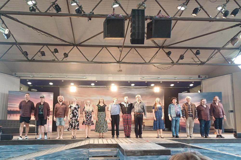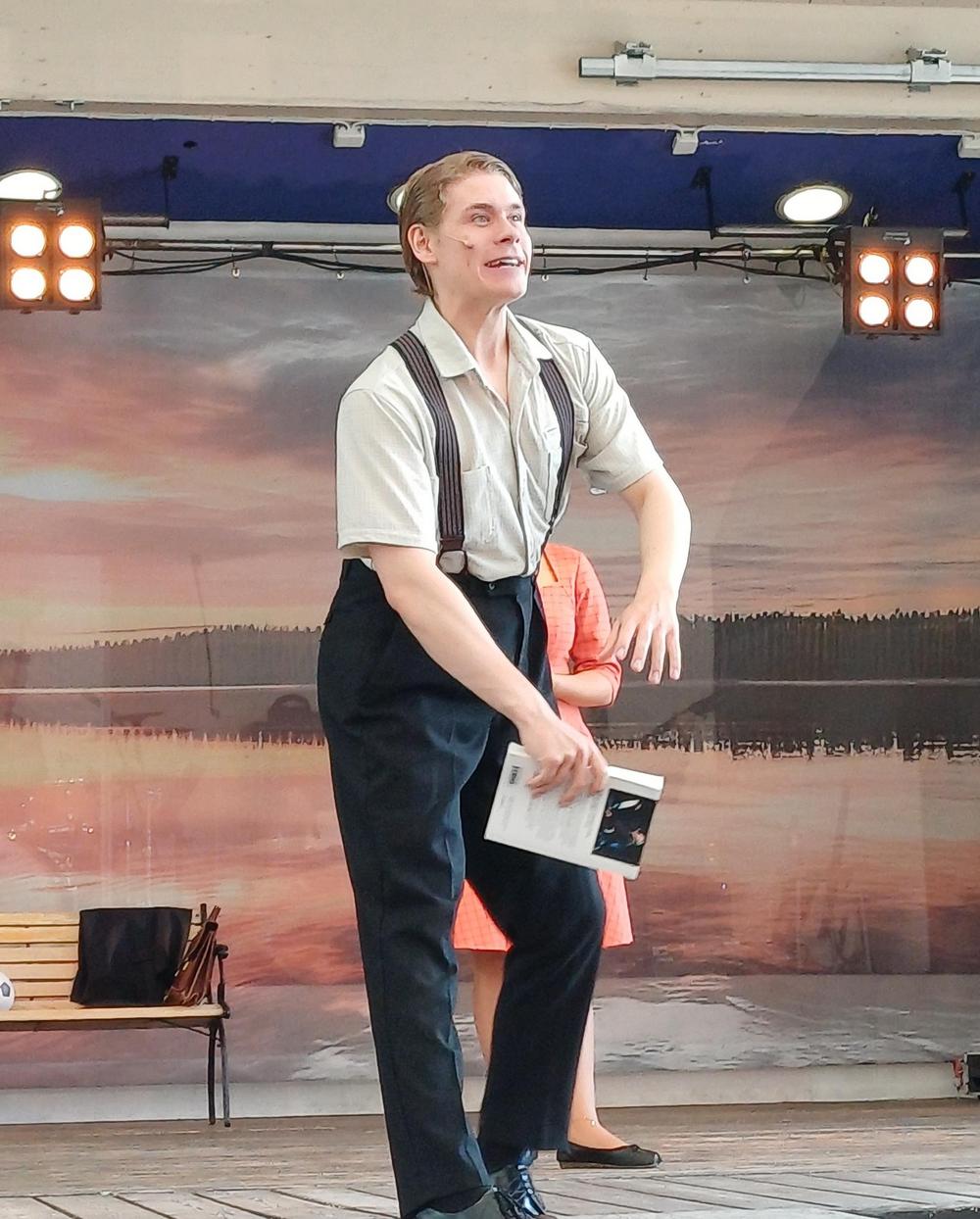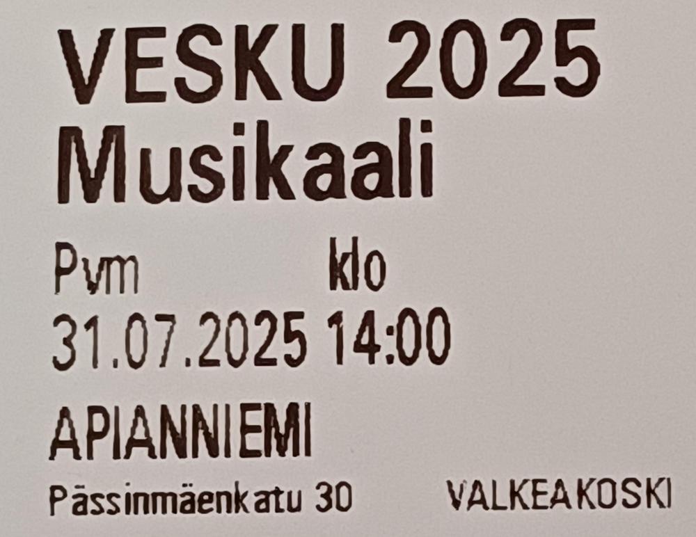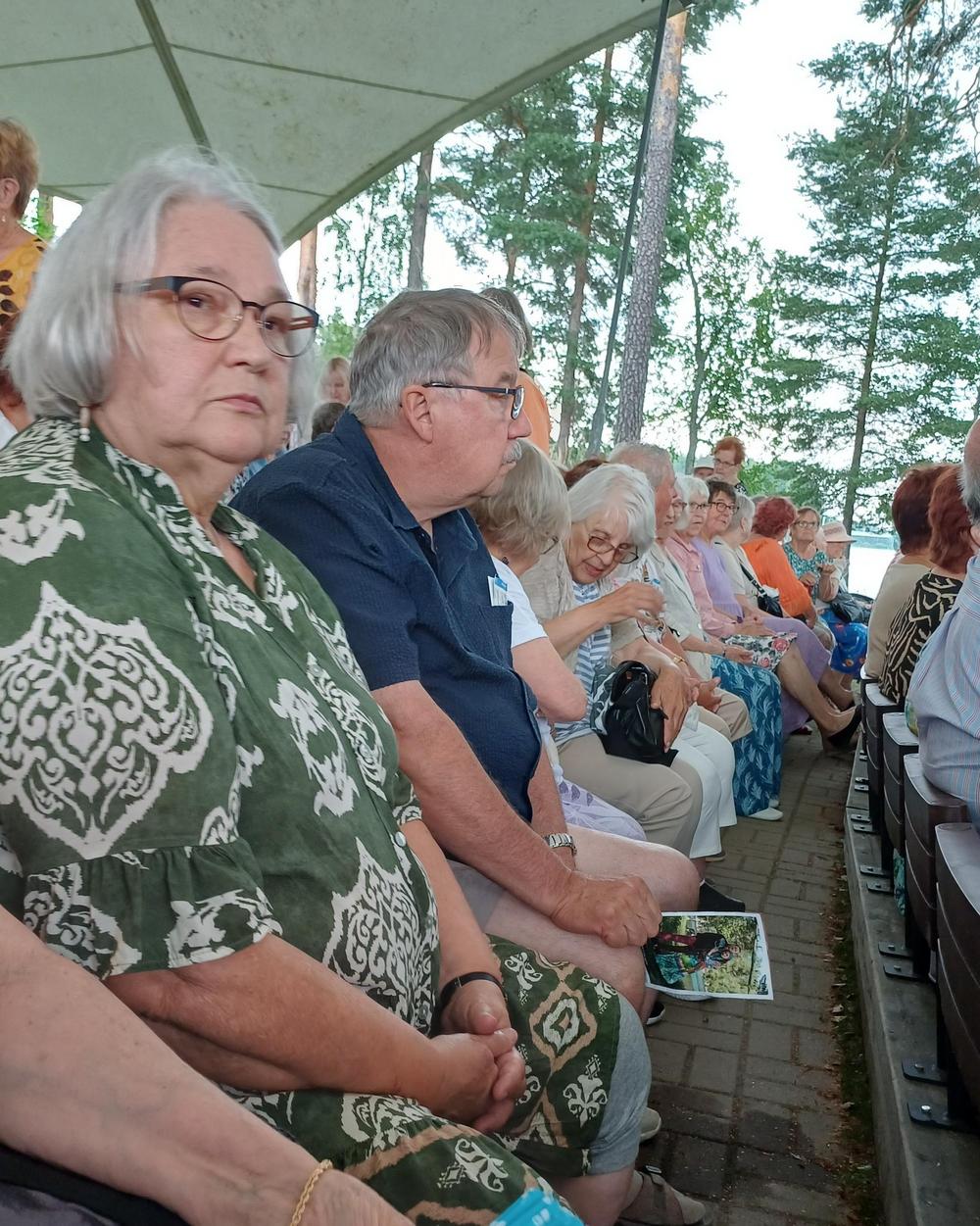 Kaunis helteinen päivä, mikä sen mukavampaa kuin lähteä linja-autolla kesäteatteriin kohteena Ruoveden eläkeläisten kanssa Valkeakoski ja nauttimaan VESKU - musikaalista. Juuri sopivasti saavuttaessa Apianniemeen, alkoi satamaan vettä virkistäen katsojia. Onneksi katettu katsomo suojasi meidät esityksen ajaksi ja sade loppui.